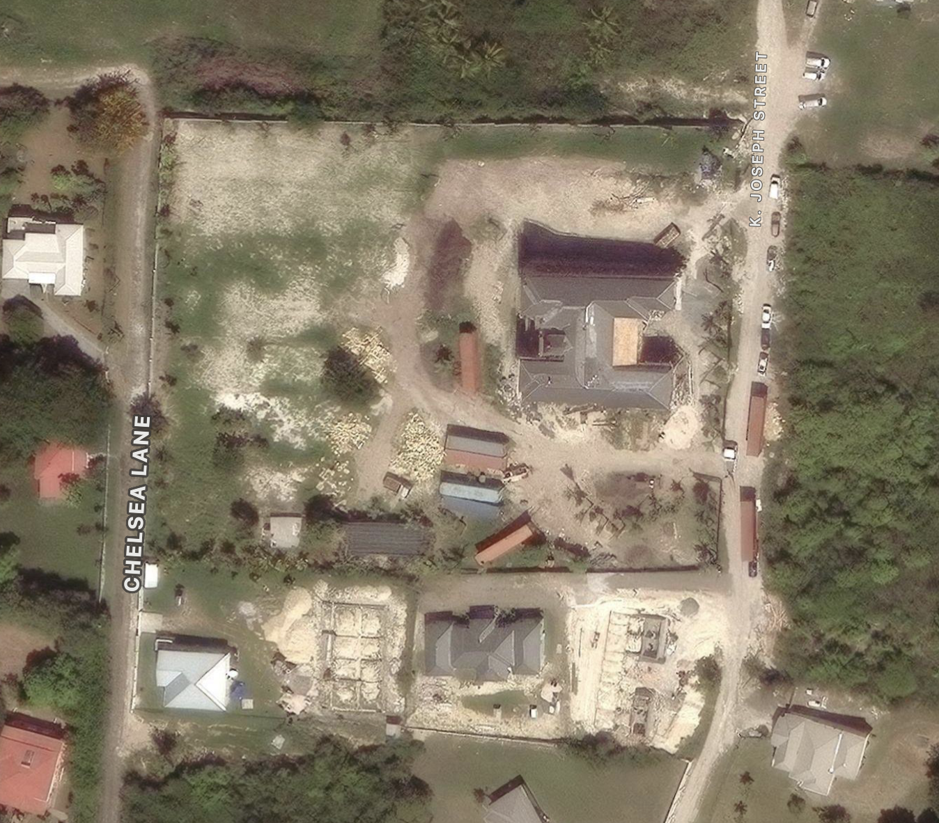 Satellite images of the Browne’s housing project, from Google Earth. Location: 17°09’07.68″N 61°50’23.40″W.